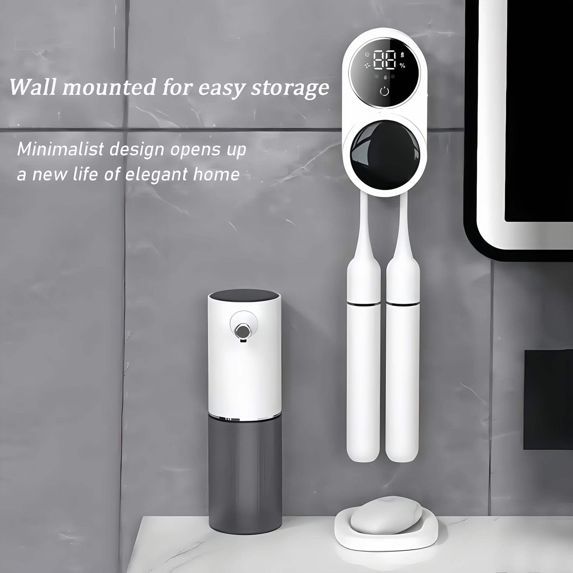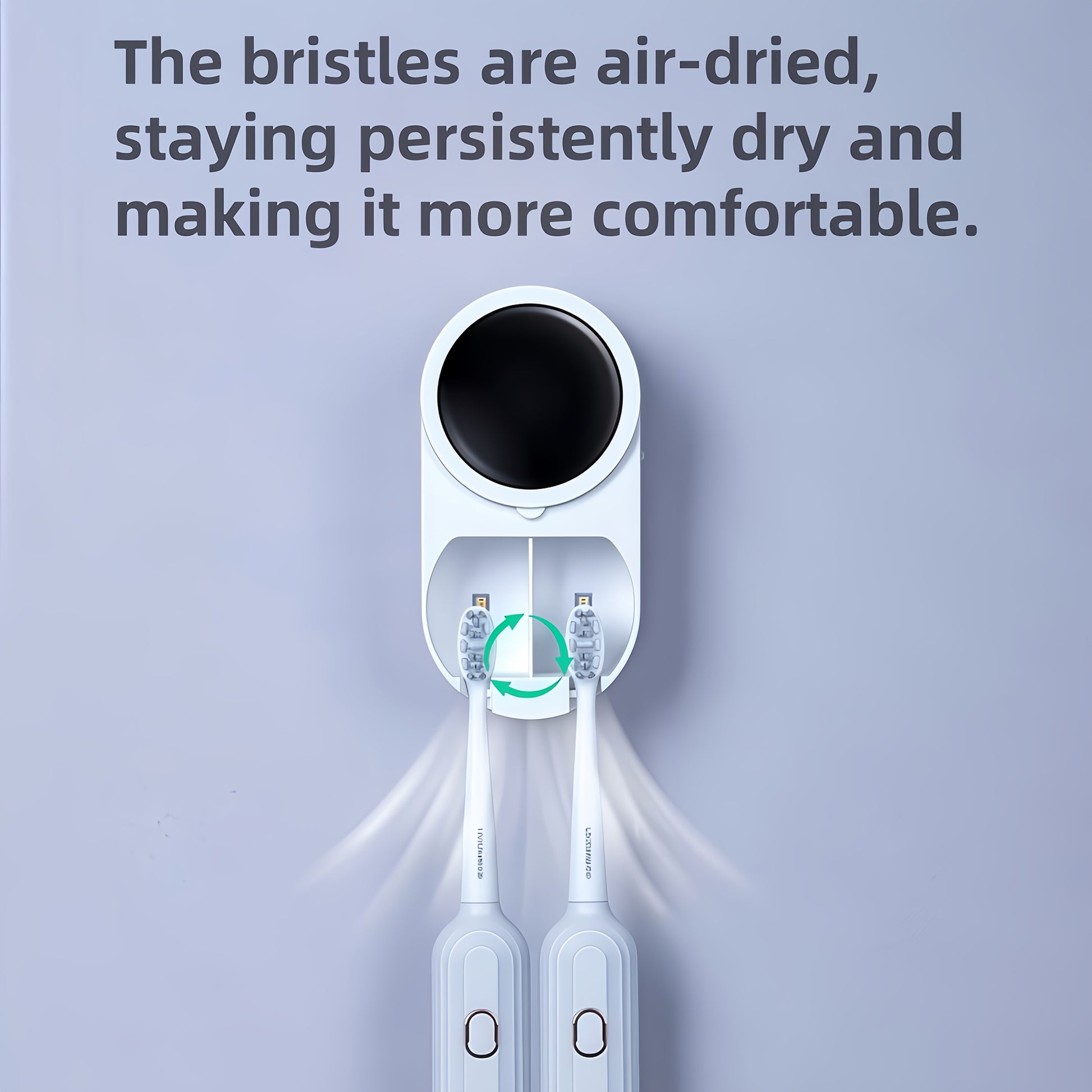 This innovative toothbrush case uses UV lamps to eliminate up to 99.99% of microorganisms by destroying their DNA and RNA, preventing reproduction and ensuring better hygiene for your family. Featuring advanced touch-free inductive technology, the cover opens and closes with a simple hand wave, reducing contact and enhancing bathroom safety. It includes interchangeable holders for single or double toothbrushes and razors, providing flexibility. The high-definition display shows six real-time functions for easy monitoring. With long-lasting battery life, one full charge provides at least a month of use, minimizing the need for frequent charging. The case is also removable, easy to clean, and includes a drying function to prevent moisture buildup and bacterial growth.
